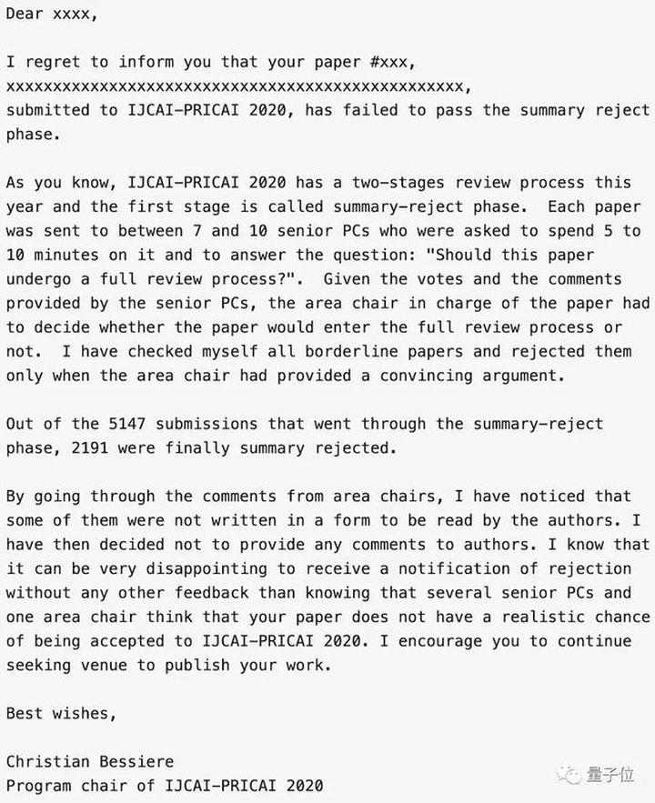 还记得去年的那封来自时任程序主席Christian Bessiere的邮件拒信吗: