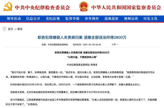 编者按:据中央纪委国家监察委网站消息,关贵森因涉嫌向中诚信托有限公司原董事长王忠民行贿,并从有关项目中获得2800万元非法利益,于2017年5月29日外逃。
