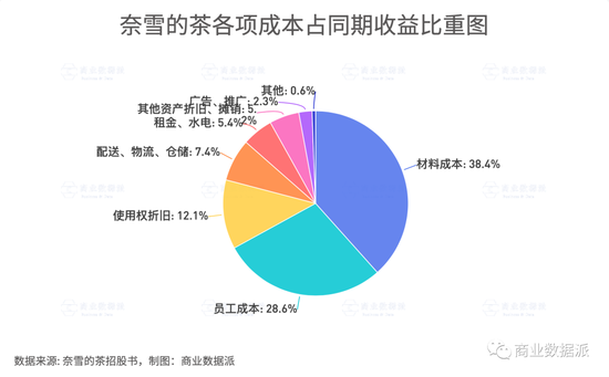 所以,奈雪净利润率低迷,不是因为大店模式带来的租金、水电等门店成本,而更多是材料成本与员工成本,另外还有设备折旧等。