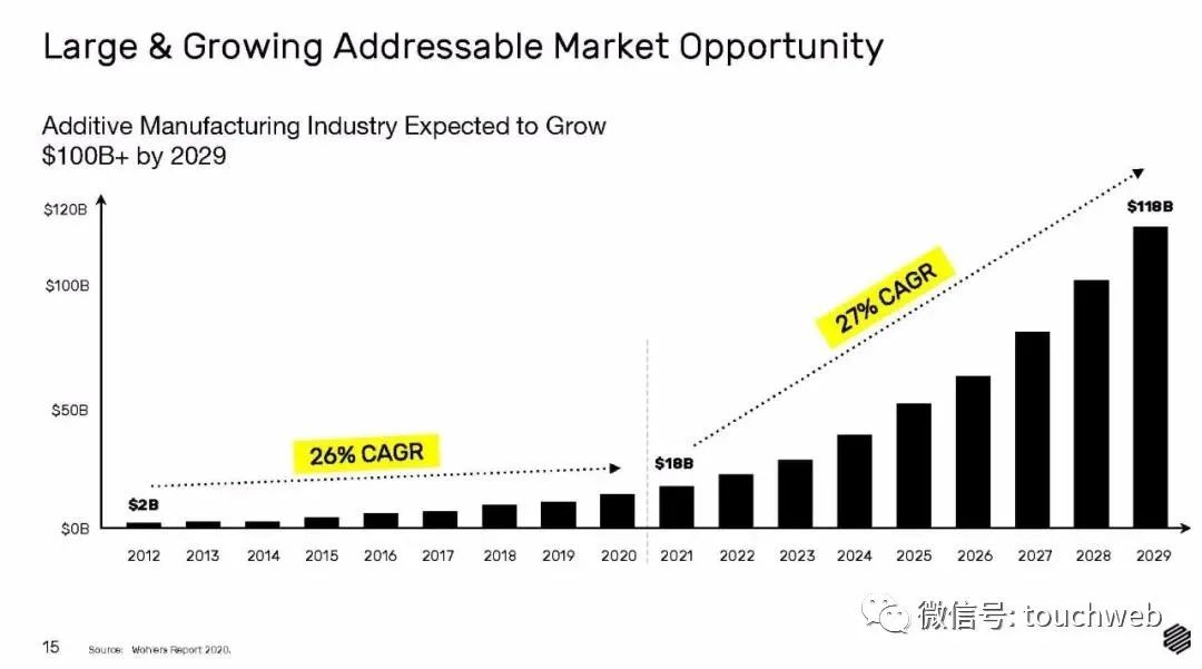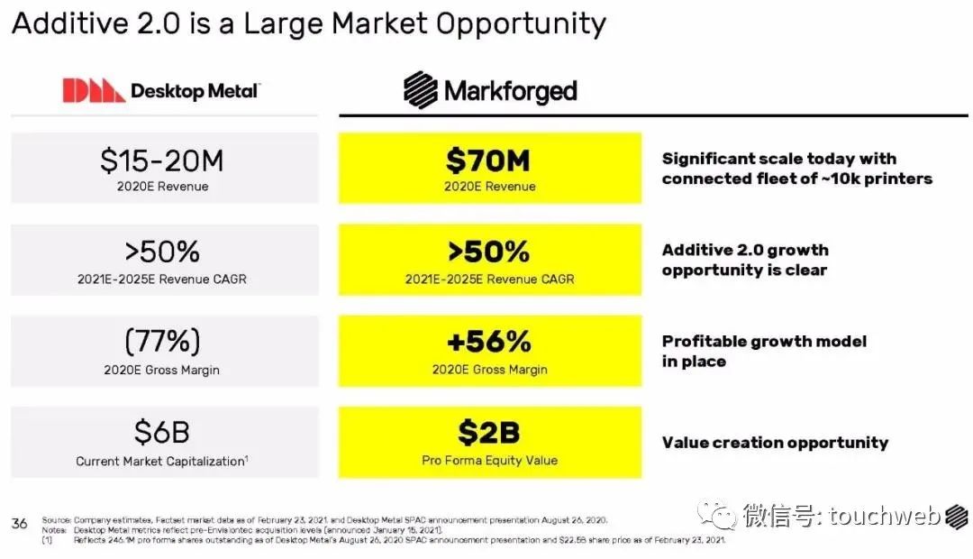 2020年12月,3D金属打印创企Desktop Metal(证券代码:DM)通过SPAC在纽交所上市,募资超6亿美元。