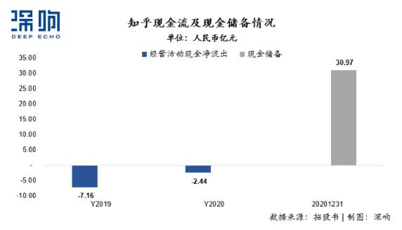 现金方面,知乎2020年经营活动现金净流量为负的2.44亿元人民币。