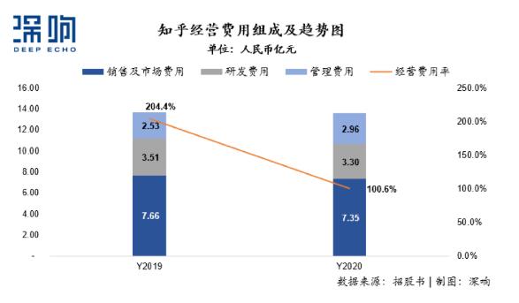 知乎在2020年整体收入翻倍的情况下,经营费用仅为13.61亿元,与2019年相比反而略有下降(2019全年13.71亿元)。这说明知乎的路线并非是“烧钱换市场”,而是“效率促增长”。