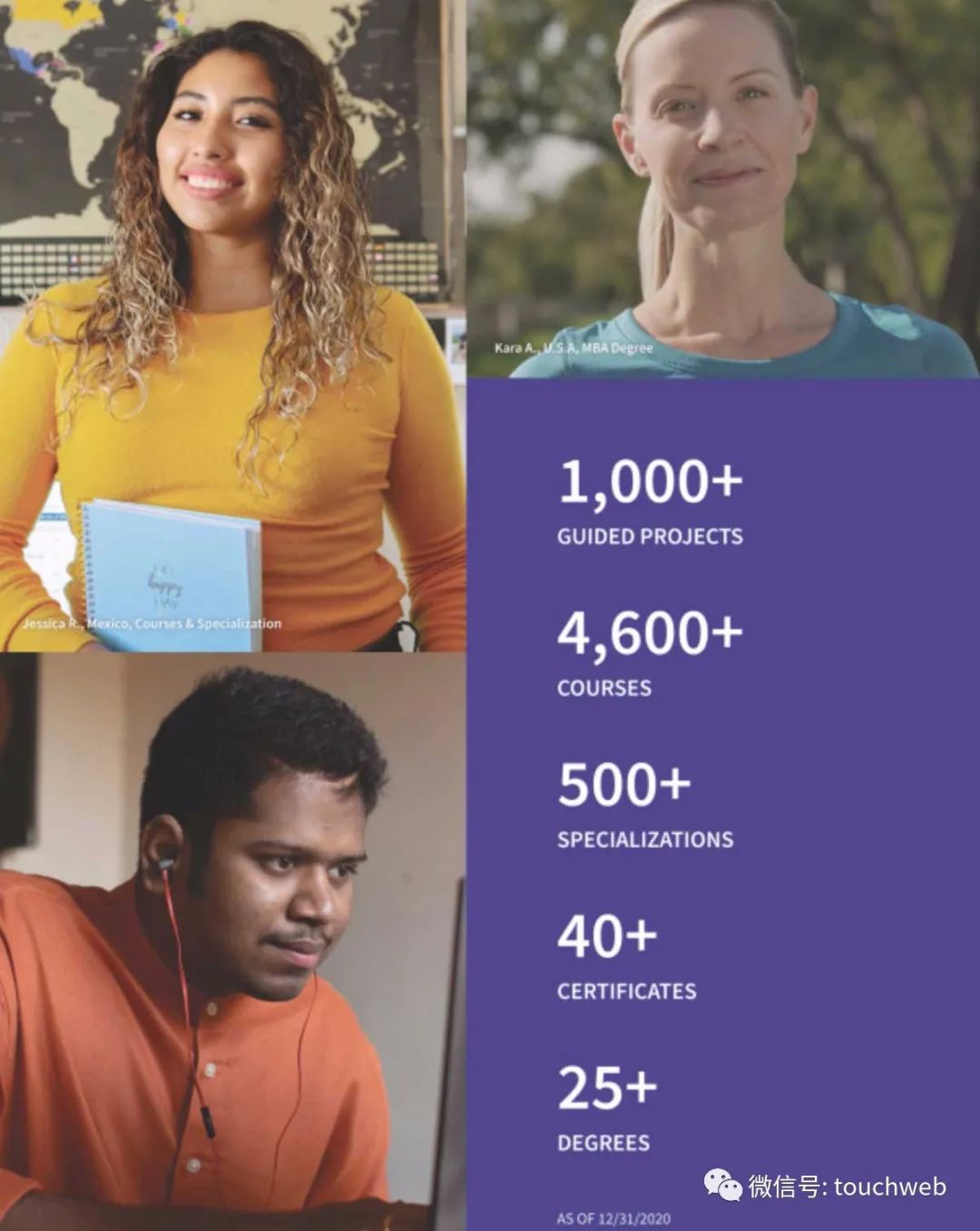 其中,Coursera在2020年第四季度营收为8326万美元,上一季度为8267万美元,上年同期为4991万美元;净亏损为2671.8万美元,上一季度为净亏损1186.7万美元,上年同期净亏损为1388万美元。