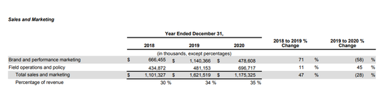 “我们未来对绩效营销的投资回报率将有更高的期望值,但投入的规模并不会恢复到2019年的水平。2021年的销售和营销投入金额占收入的比例,将会低于2019年。”
