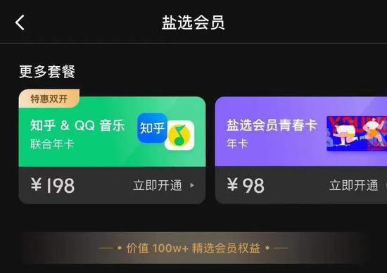 值得一提的是,盐选会员推出后其实有相当比例的用户看重的是搭配销售的模式:199元享受知乎盐选、京东plus、爱奇艺会员三家年卡,性价比极高。这波会员充值冲着知乎付费内容、社区权益而来的有多少?冲着其他两家来的又有多少?当下知乎会员充值里198年卡搭配赠送变成了QQ音乐会员年卡(QQ音乐售价168),恐怕对用户来说仍然是联合的另一方更有吸引力。