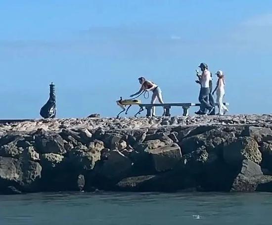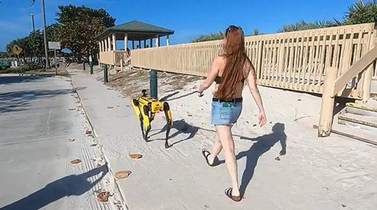 近日,在在佛罗里达州的海滩上,一个美女牵着一只波士顿动力公司制造的Spot机器狗,肆意漫步,引来不少路人围观。