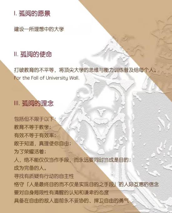 即便如此,市场上还是对博雅通识类的成人教育有着各类偏见:借博雅之名割韭菜、用高大上的名词粉饰内容、过于强调哲学的高大上而忽视学科内涵……孤阅团队的努力,仍然道阻且长,质疑、偏见、嘲讽和反对都可以想象。