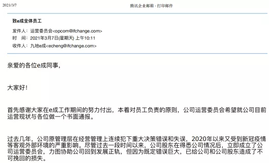 近期,累计融资上亿美金,主打“AI+HR”概念的e成科技近期就遇到破产危机。3月7日,e成科技发布内部信,宣布公司面临极大的经营困难,3月份所有员工薪酬都不能发,成立“公司运营委员会”接管公司,并明示公司已经进入生死存亡之际。