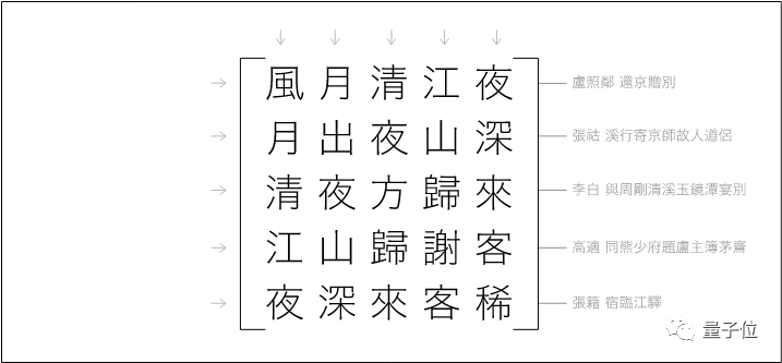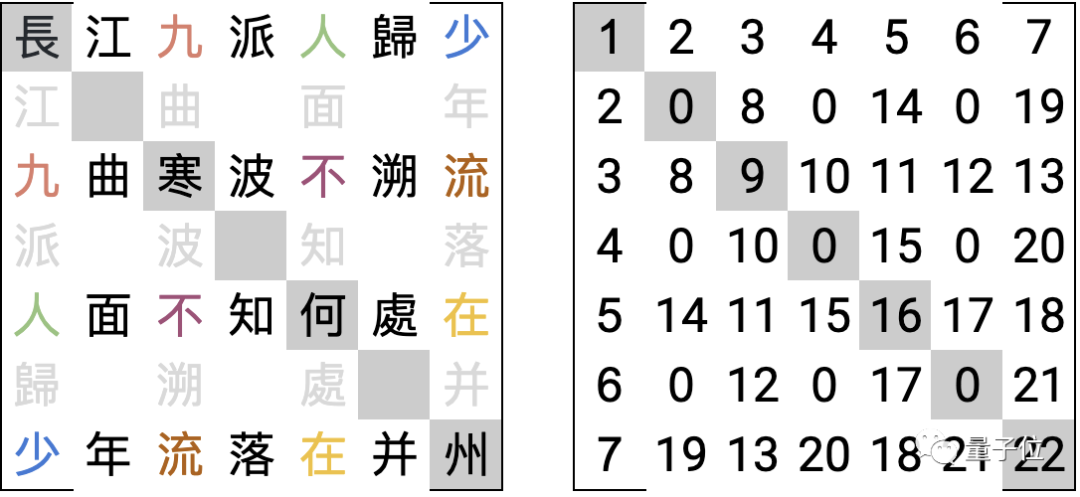不过,他遍历了全唐诗里所有五言诗共二十八万七千句后,也只能得出两个这样的幻方。