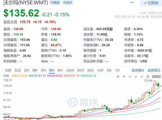 亚马逊发展迅猛,但是不要忽略了沃尔玛,它的股价也涨得不错。