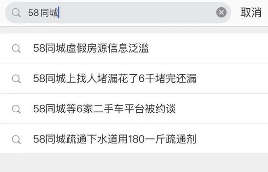 与此同时,租户对58同城的抗议并不比经纪人少。上微博搜索58同城,第一个关联词条就是“虚假房源信息泛滥”。黑猫投诉上有关“58同城 假房源”的结果共236条,指控58同城以虚假房源做幌子欺骗消费者的用户比比皆是。
