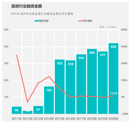 国内的情况一样不容乐观,但从Fastdata极数发布《2020年中国在线旅游行业报告》中可以发现,2020年国内创下了420亿的旅游业融资新高。