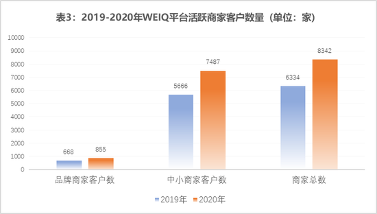 从财报中可以发现,得益于WEIQ平台高度的数字化与自助化流程,入驻商家客户数量稳步增加,留存率也保持高位,品牌老客户在活跃商家客户的留存比率达到77.99%。