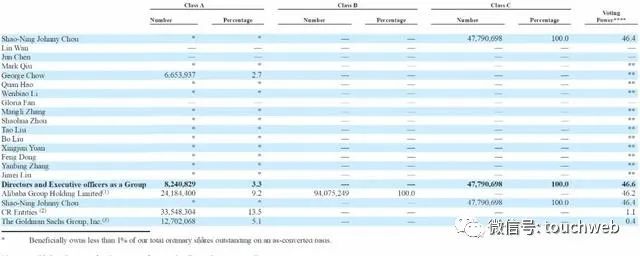 周韶宁(Johnny Chou) 持有47,790,698股C类股,一共持有约12.28%股,拥有46.4%的投票权;