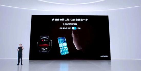 基于超级终端的多设备协同,鸿蒙 OS 会支持多设备协同认证,甚至有些设备不支持高级别认证时,其他设备可以帮忙。比如手表和手机之间的协同验证,手机在解锁同时还需要手表戴在手上,让人脸认证安全性再次提升。