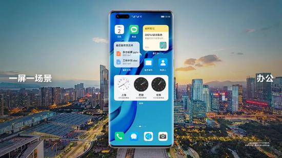 在办公场景中,用户制作 PPT 时可以用平板的手写笔去画,手机中的文档也可以在平板上更好地展示,需要分享的内容可以用大屏或电视进行展示,就像使用一台设备一样,进行办公的协同。