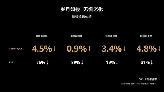 在性能方面,鸿蒙 OS 能够保持 36 个月持续流畅运行,保持跟新手机一样的运行速度,华为特别提到,在系统空间几乎占满的情况下,使用依然会非常流畅。