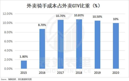 由此,平台不得不承担高昂的骑手成本。如下图,美团外卖骑手成本占总交易额的10%左右。