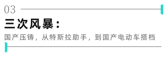 另一方面,马斯克对压铸机的执着,却在遥远的中国大陆压铸产业掀起了一场行业风暴,这场风暴的冲击分为三次,历时7年之久,也让这个陷于停滞的传统行业迸发出了新的活力,甚至创造出半年上涨20倍的财富神话。而中国电动车产业的发展也随着特斯拉的三次压铸变革,而在一次次交锋与学习中,不断成长。