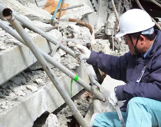 Satoshi Tadokoro 博士在 2007 年 Berkman Plaza II(佛罗里达州杰克逊维尔)停车场倒塌事故中插入 Active Scope Camera 机器人。