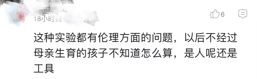 有网友表示,「以后不经过母亲生育的孩子不知道怎么算,是人呢还是工具?」