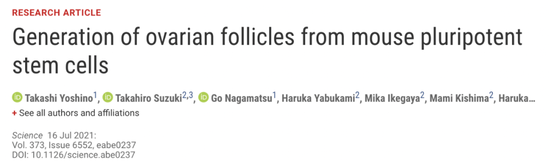 这项最新研究成果 Generation of ovarian follicles from mouse pluripotent stem cells 已在Science 期刊发表。