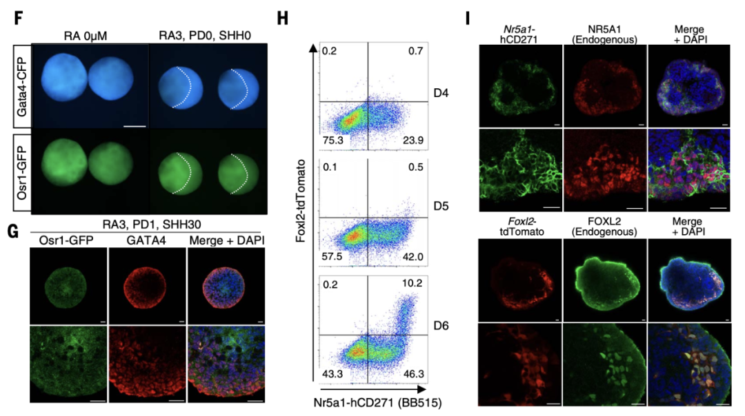 当这些FOSLC与来自小鼠胚胎干细胞的卵母细胞(PGCLC)放在一起共同培养时,FOSLC产生了卵巢卵泡结构,而PGCLC在里面发育成有活力的卵子。