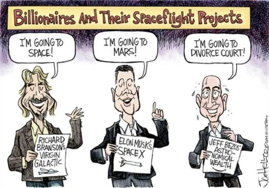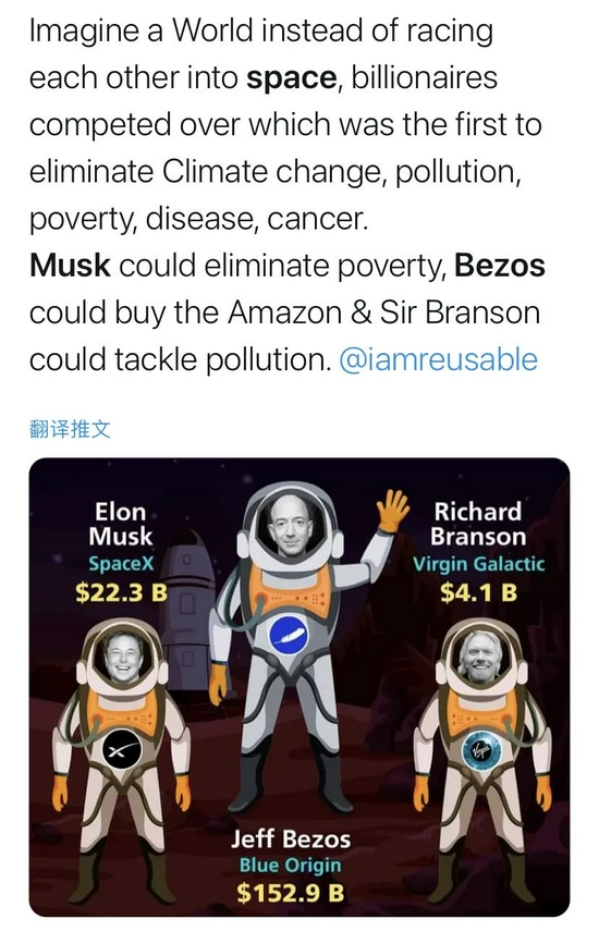 有这样说的👇:亿万富翁们很高兴能用他们省下的所有钱去太空竞赛而不用交税了。