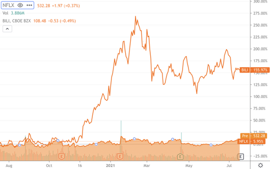 同样作为流媒体平台,同样是从内容出发切入电商与游戏,B站可以作为Netflix未来发展的参考系之一。