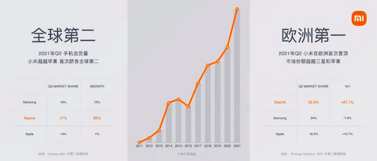 7年后的今天,小米超过苹果,首次成为全球第二。