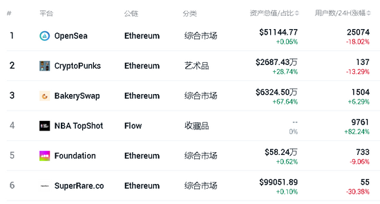 其中最出名的平台有高端玩家徐静蕾常去的Opensea,NBA合作的NBA Topshot和孙宇晨购买的Cryptopunks等平台。