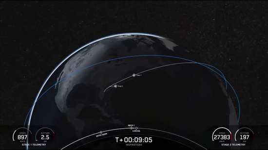 世界上第一个进入地球轨道的“全部非专业宇航员机组(all-civilian human)”、SpaceX Inspiration4商业太空旅行任务发射成功!