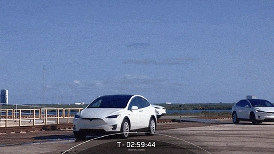 完成穿着宇航服后的适应程序后,他们又乘车前往发射场。大概北京时间5点03分,乘坐专门设计的特斯拉Model X汽车的宇航员到达发射场。