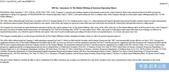 9月7日,蔚来公告将通过在市场上发行股票的方式出售总额高达20亿美元的美国存托股票(ADS)。