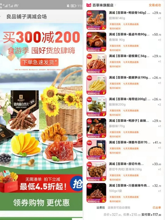 还有一个槽点就是,满300减200简直就是零食行业的惯用伎俩,堪称当年各大城市吐血关门最后大促销的华伦天奴。