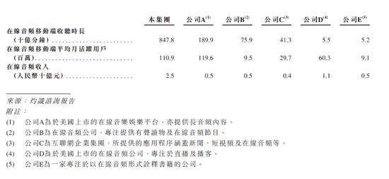 根据喜马拉雅招股书上显示的中国在线音频行业的竞争格局表显示,从移动端收听时长和收入来看,已经当之无愧是中国最大的在线综合音频平台了,营收跟其它五家加起来差不多。