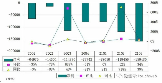 小鹏汽车2021年第三季净亏为15.95亿元,上年同期的净亏损为11.49亿元。