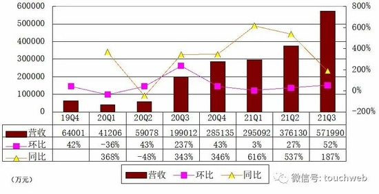 财报显示,小鹏汽车2021年第三季度营收达57.2亿元(8.9亿美元),较2020年同期上升187.4%,较2021年第二季度上升52.1%。
