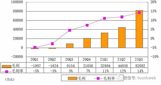 小鹏汽车2021年第三季度毛利为8.2亿元,同比增8倍。小鹏汽车2021年第三季度毛利率达到14%,上年同期的毛利率为5%。