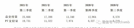 小鹏汽车2021年第三季度P7交付量为19,731辆,为季度新高并较2021年第二季度的11,522辆上升71.2%。