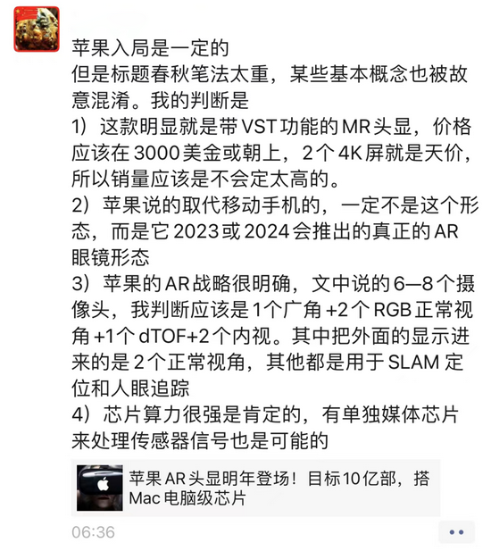 他认为,苹果入局AR领域是一定的,同时也从自己的角度,对报告中的内容做了解读。