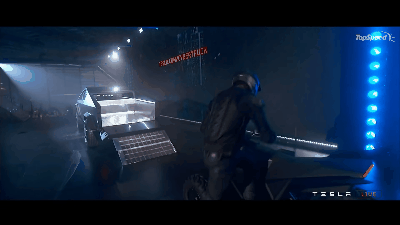 在发布会现场,驾驶员还直接把车开进了Cybertruck的挂斗里。