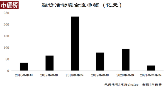 2016年至2020年,再加上2021年前三个季度,不到六年的时间,爱奇艺的融资活动现金流量净额为529.1亿元。