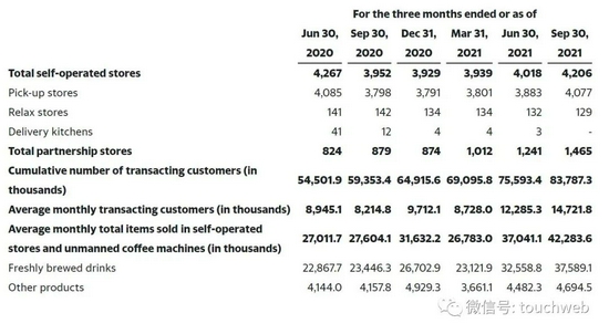 截至2021年9月30日,瑞幸咖啡一共拥有5671家店,其中,4206家为自营店,较上年同期的3952家增长6.4%;1465家为合作店,较上年同期的879家增长66.7%。
