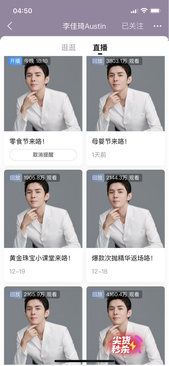 根据李佳琦直播间的历史回放数据来看,近期日常直播6个小时左右,观看人数一般在1900万~2500万之间,双12场零点的那场直播共 7个小时,观看人数为4500万,而20日7点开播,6个小时观看人数超3800万。