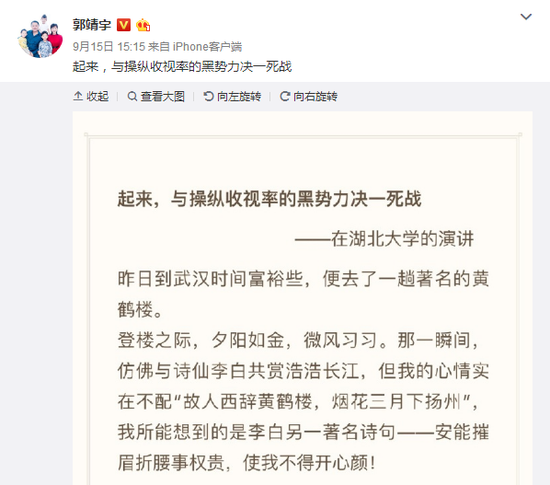 郭靖宇“宣战”之后,国家广电总局宣布就收视率问题展开调查。