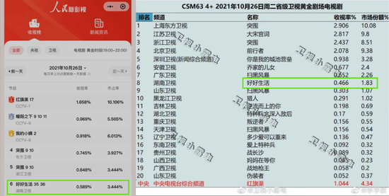 比如,之前湖南卫视电视剧《好好生活》,机构的收视率显示较低,在“人民收视榜”中的收视率数据更高一些。一对比,基本能判断这部剧是“裸播”,没有作弊。