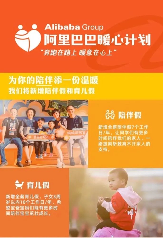 比如,2021年末,阿里巴巴集团就宣布了多项员工福利升级方案,其中员工一胎产假由原来的128天延长至158天;二胎、三胎产假延长至 188天。