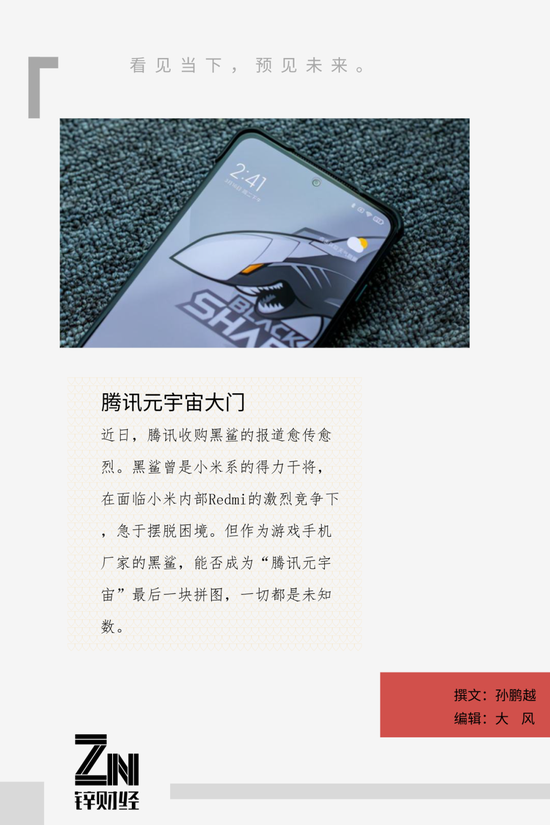 腾讯旗下的天美工作室,已经围绕《王者荣耀》做元宇宙开发工作,也就是“王者荣耀元宇宙”,目前该项目是腾讯对元宇宙领域的核心。而曾经对王者荣耀进行优化服务的黑鲨,更是十分契合腾讯的硬件要求,即有“手机”属性,还有“游戏”属性。