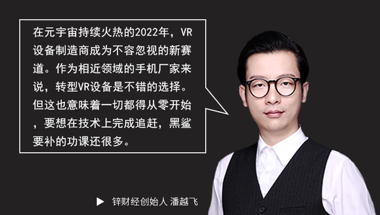 黑鲨在面临手机市场业务颓势下,也在积极探索VR领域,在2021ChinaJoy携手AR眼镜厂商Rokid,探索研发VR设备。再加上黑鲨创始人和研发团队出身于华为研究所,对硬件领域有丰富经验。虽然黑鲨没有量产过VR设备,但它并不是一窍不通的“行业小白”。